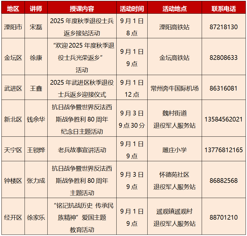 | 发布日期:2025-09-09 来源:常州市退役军人服务中心 |
