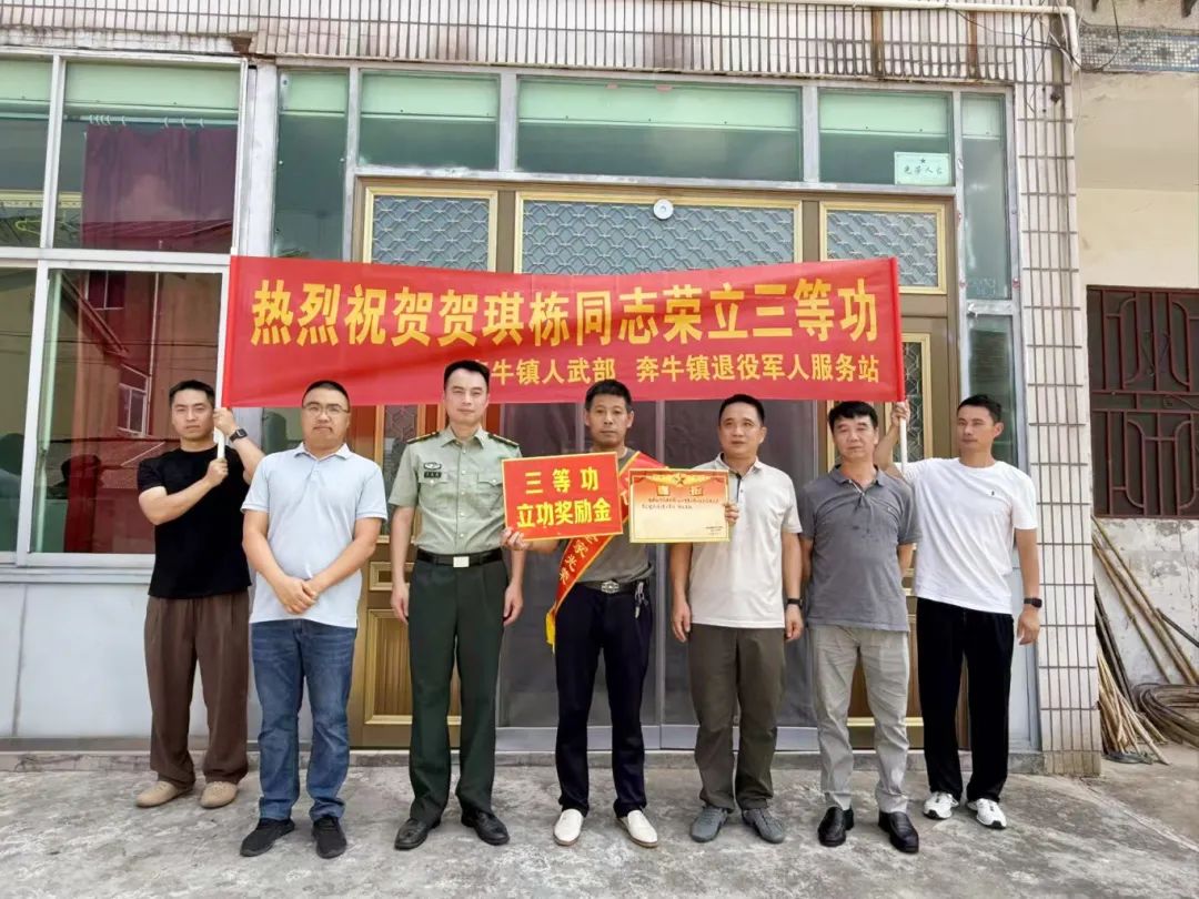 7月18日上午,新北区奔牛镇开展为荣立三等功现役军人贺琪栋家庭送喜报活动。 慰问组来到现役军人贺琪栋家中,将承载着荣光的喜报和鲜花郑重送到家属手中,对立功军人及家属表达祝贺。慰问组与军属亲切交谈,仔细询问贺琪栋在部队的生活、训练和成长情况,并鼓励家属们继续做好军人的坚强后盾,让其在部队安心服役,再接再厉、再创佳绩。 下一步,奔牛镇退役军人服务站将继续做好拥军优属工作,不断提升军人军属的幸福感和获得感,激励更多有志青年投身军旅,为国防事业贡献力量。 |