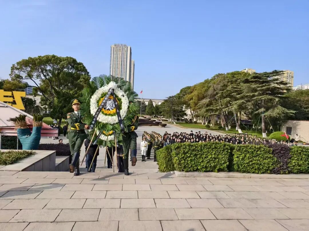 全体人员列队肃立,奏唱国歌,激昂的旋律回荡在陵园上空。随后,大家垂首默哀,现场庄严肃穆,唯有风声低回,仿佛在诉说着那段不能忘却的历史。在深情的《献花曲》中,各界代表缓缓走向纪念碑,敬献花圈并整理缎带,寄托无限哀思。