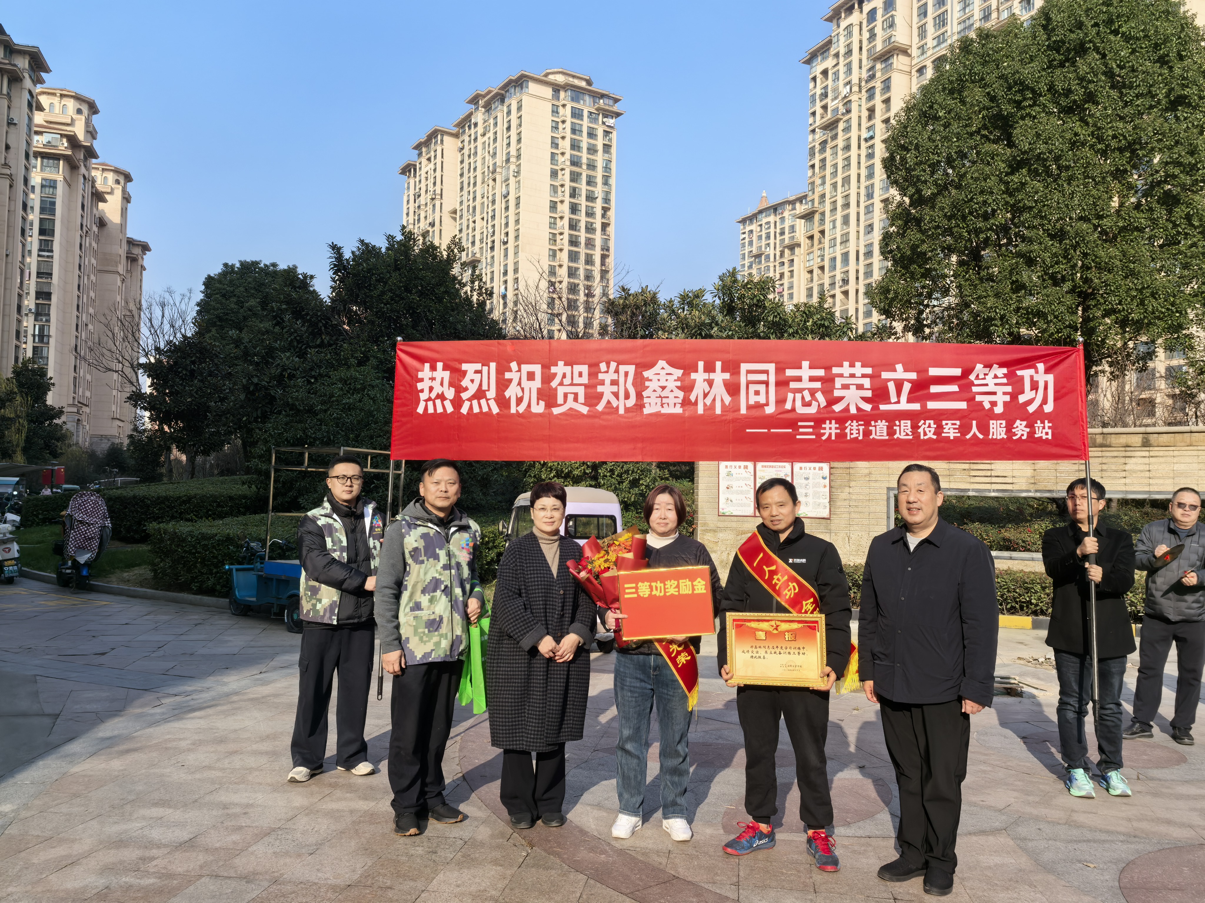 12月25日上午,新北区三井街道退役军人服务站开展为荣立三等功的现役军人郑鑫林家庭送喜报活动,让军人军属共享荣耀与喜悦。