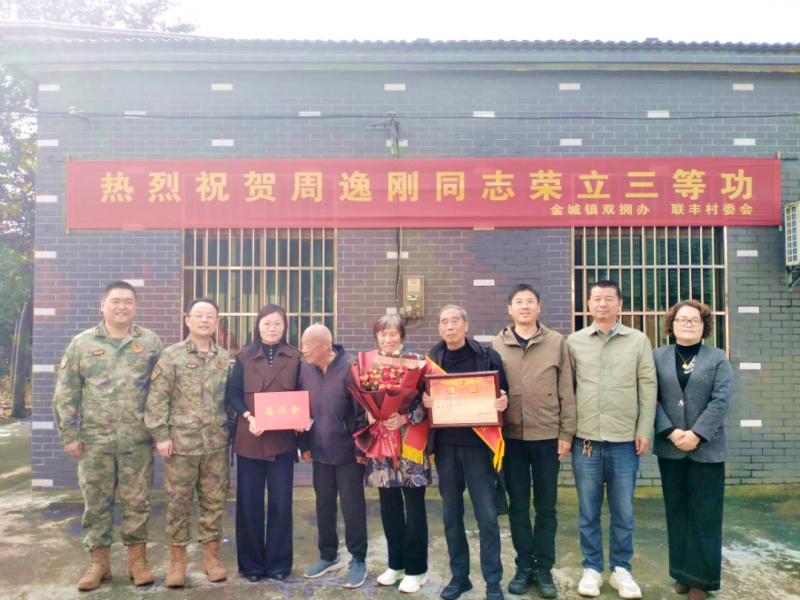 近日,金坛区金城镇开展为荣立三等功现役军人家庭上门送喜报活动。
