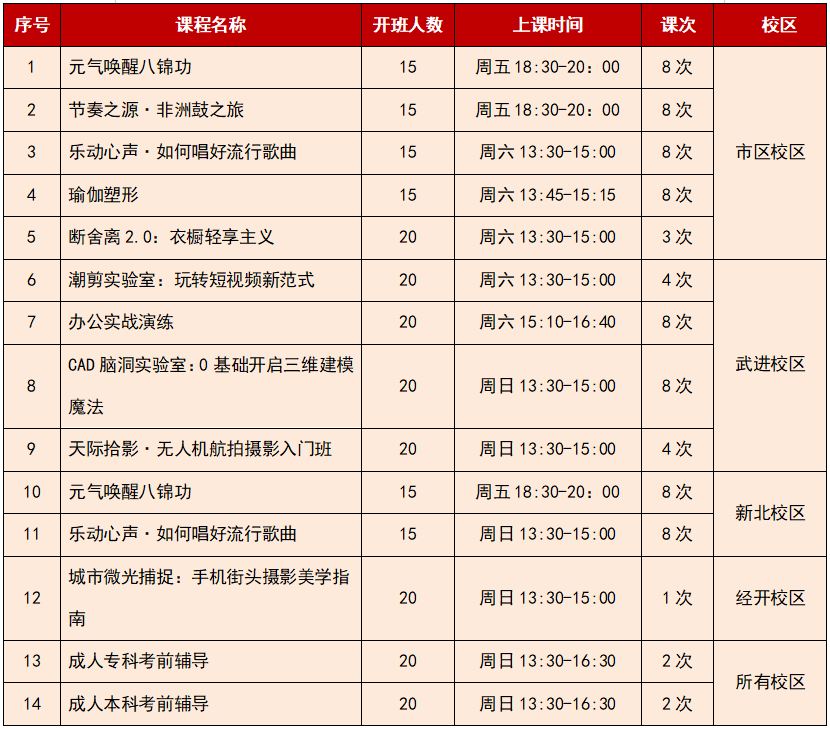 退役军人夜校课程表